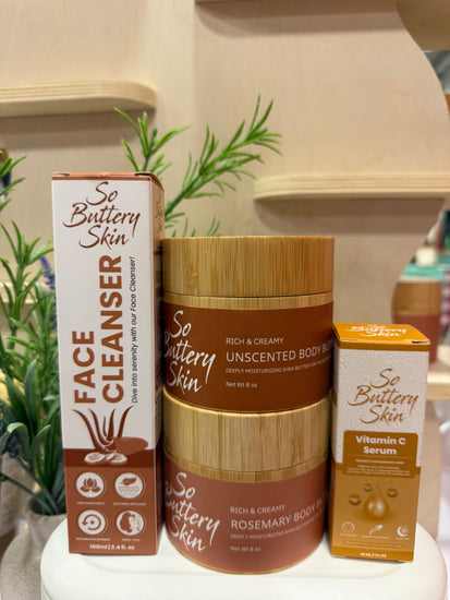 Rosemary Body Butter + Unscented Body Butter + Gentle Face Cleanser + Vitamin C Face Brightening Serum