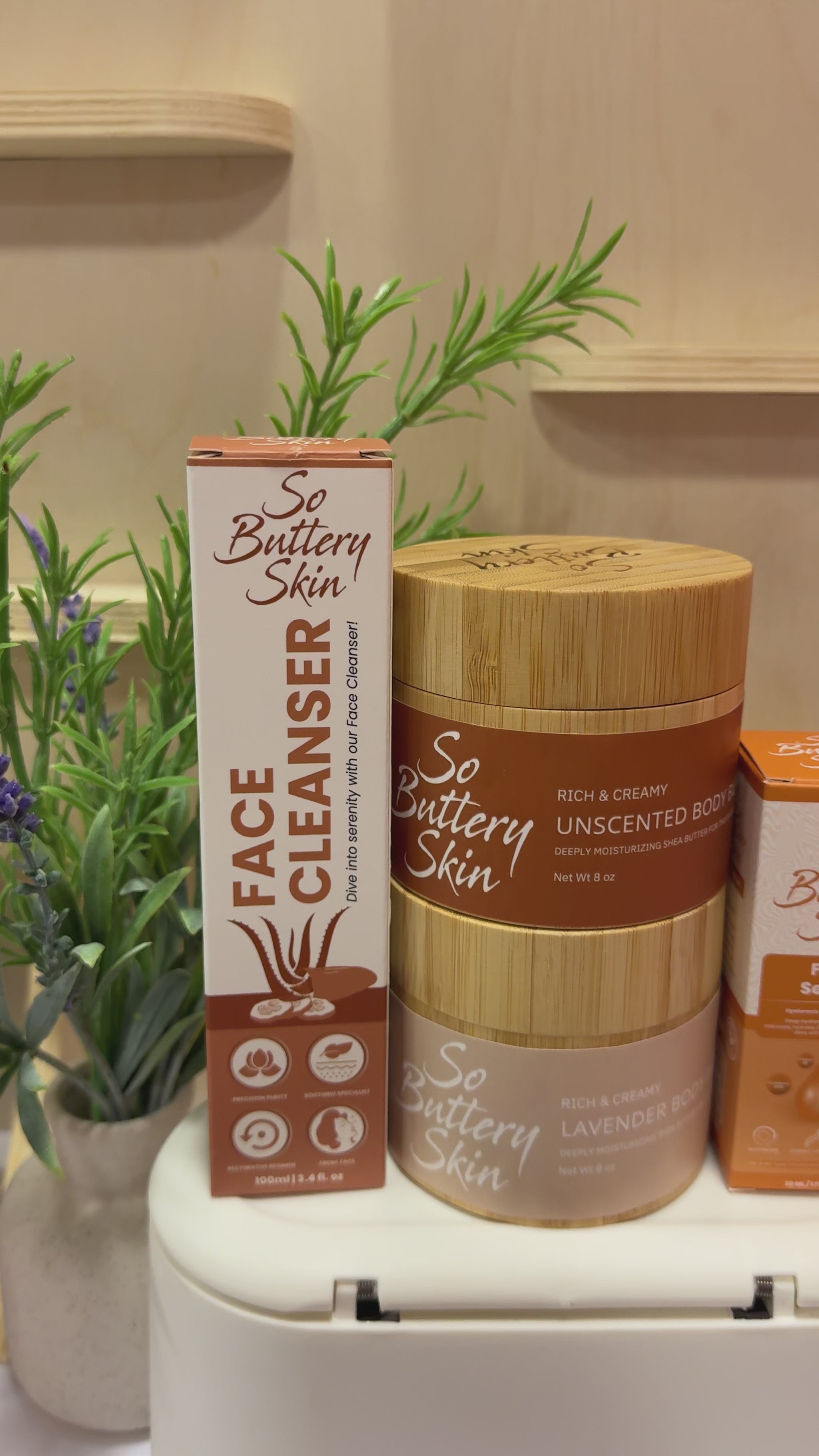 Lavender Body Butter + Unscented Body Butter + Gentle Face Cleanser + Hydrating Face Serum